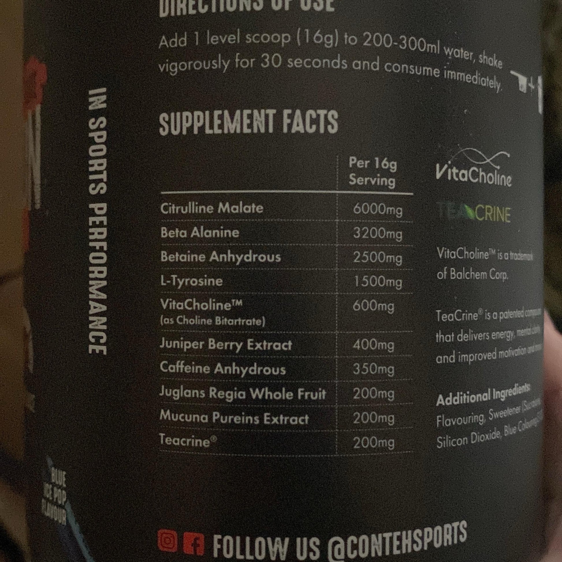 Conviction Elite is Conteh Sports most powerful pre workout to date! It s made for the elite performers. It s for those of you that want to surpass your natural limits in the gym. Train harder for longer with Conviction Elite, our high stim and focus formula. Conviction Elite ramps up many of the original Conviction ingredients to give extreme energy, skin splitting pumps and a concentrated mind-muscle connection.We have included 4 NEW ingredients; VitaCholine - Which is a powerful nootropic to enhance cognitive function and focus. Juniper Berry Extract and Jugulans Regia which are two powerful stimulants that contribute to a smooth increase in energy without the jitters, but provide a lot of focus and performance without a nasty crash. Lastly we added in Mucuna Pureins Extract to give you an uplift in mood and overall wellbeing heading into your gym sessionConviction Elite is not for the faint hearted, the effects are felt instantly This is where your training goes to the next level.